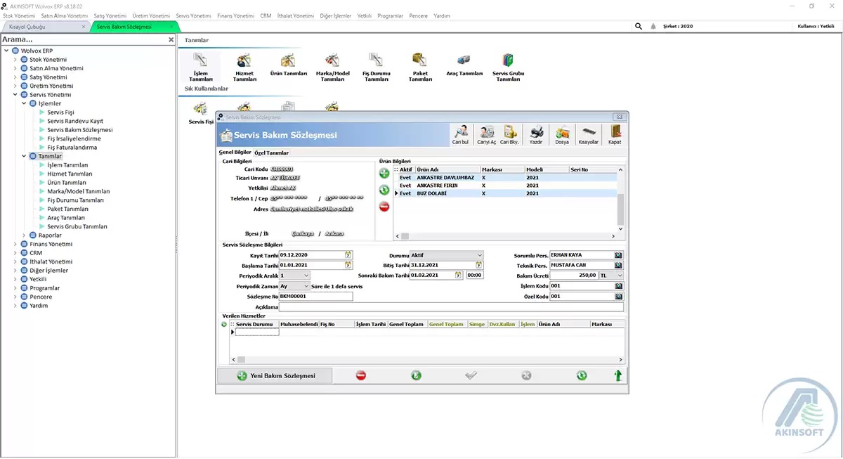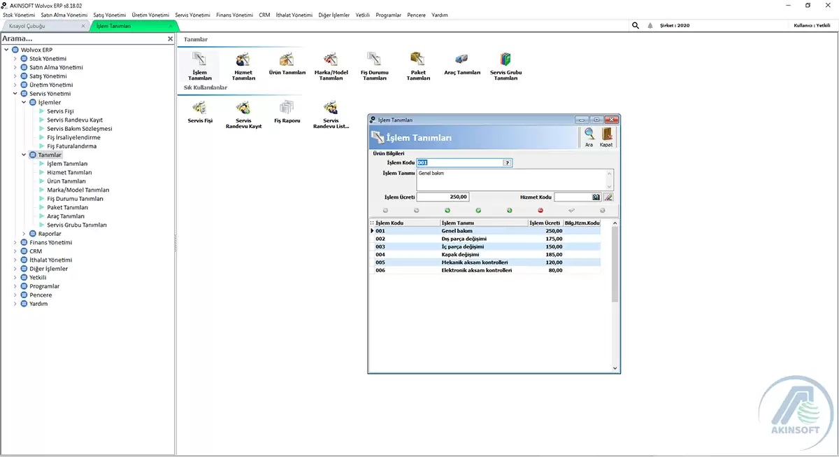 AKINSOFT WOLVOX Servis Programı, WOLVOX Erp’ nin bir parçasıdır ve tam entegrasyonludur.